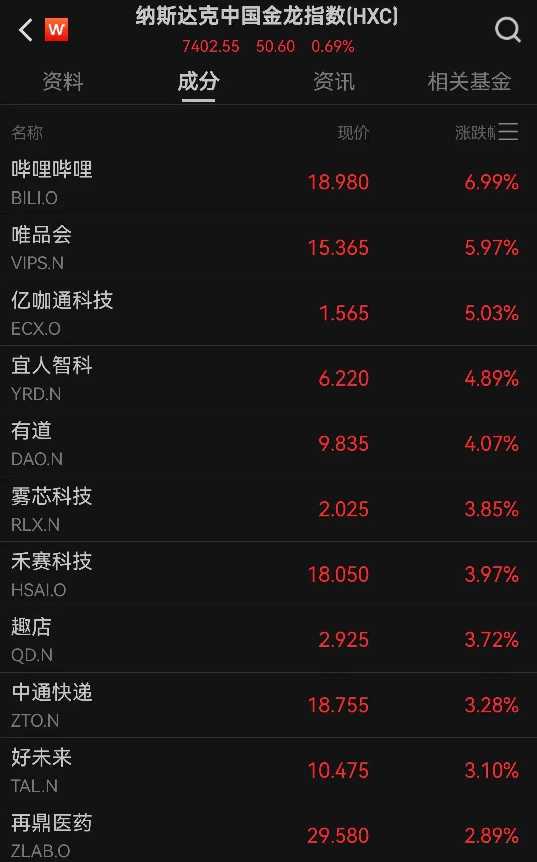 中概股上涨!哔哩哔哩、唯品会领涨